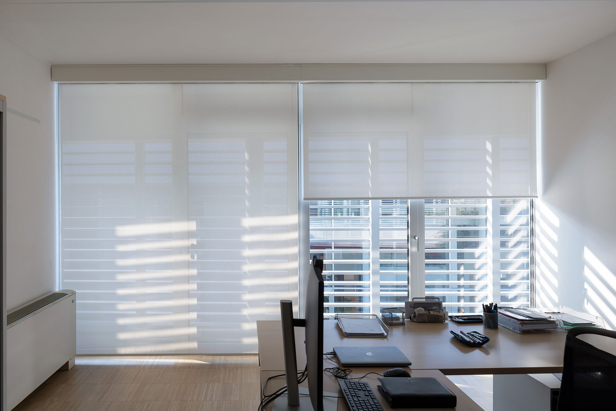 Per rispondere a queste esigenze, sono state scelte le nostre tende a rullo per interni della linea Nest, sinonimo di minimalismo e affidabilità meccanica.