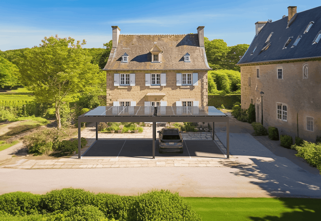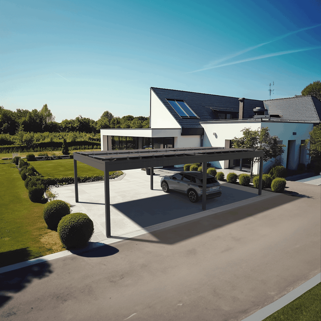 Una pergola con pannelli fotovoltaici integrati che produce energia pulita e tiene al fresco il tuo spazio esterno.